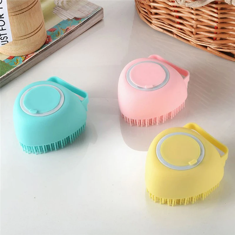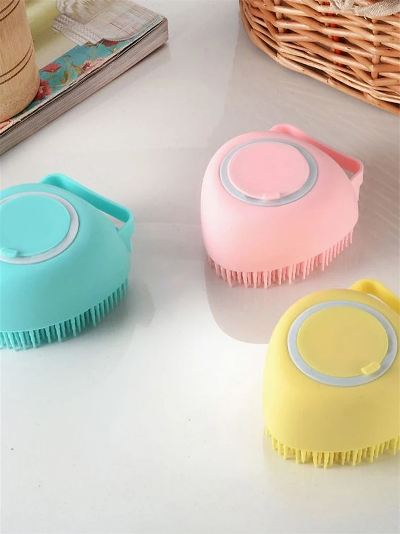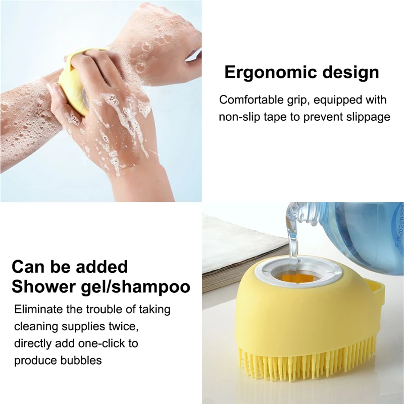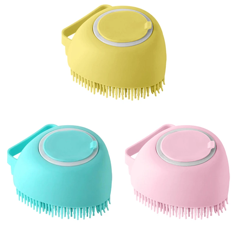 Silicone Pet Bath Massage Brush with Gel Dispenser Soft Dog Cat Scrubber